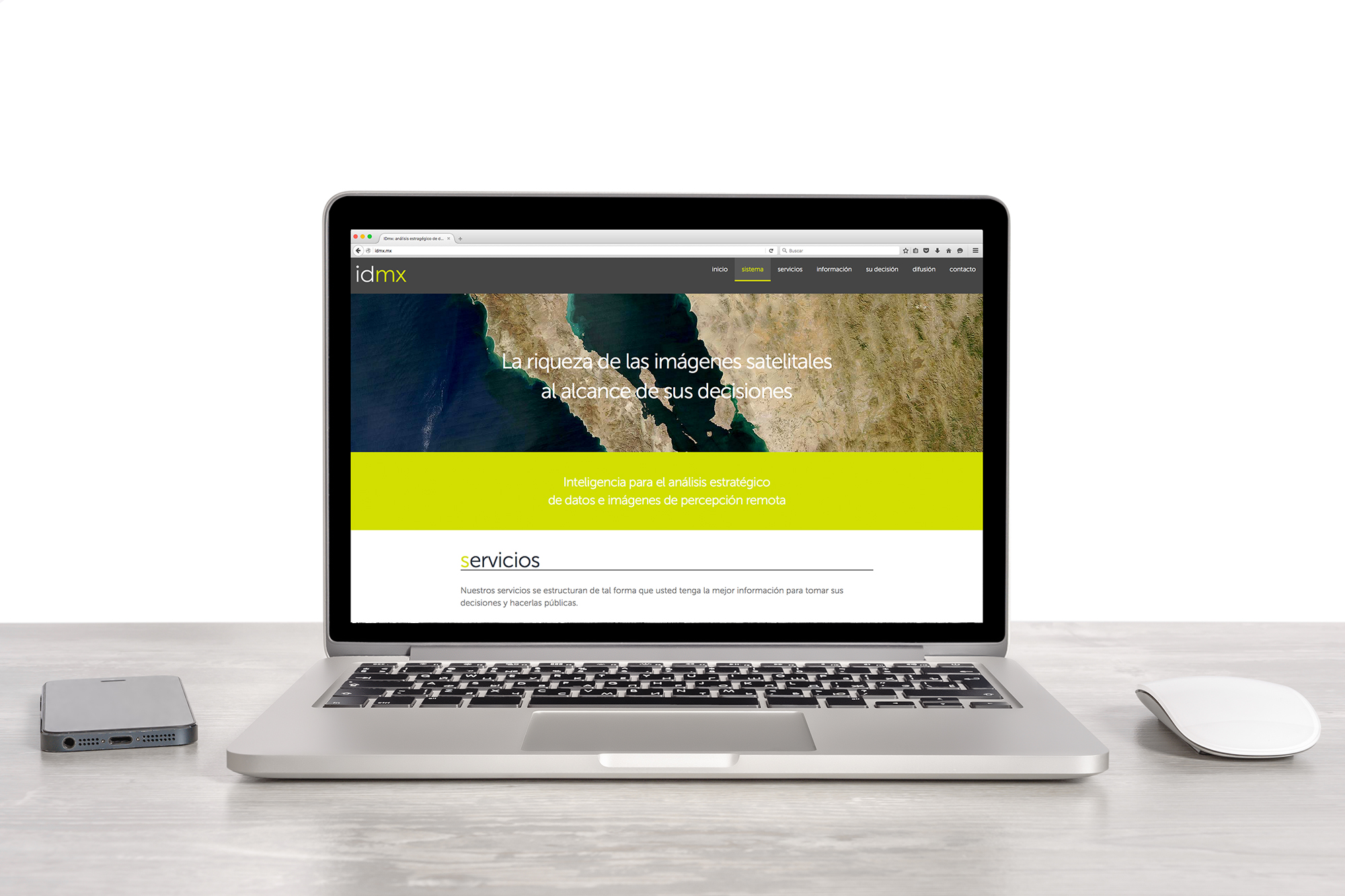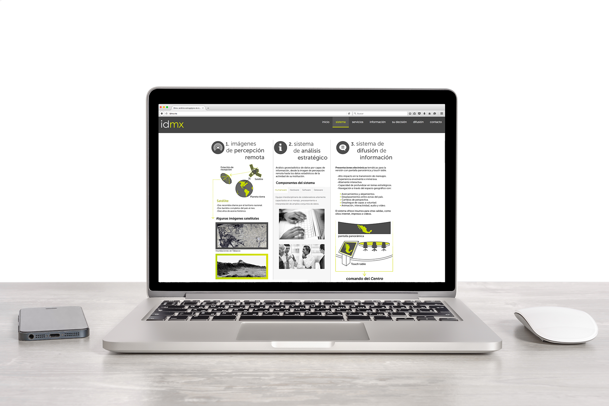 El sitio se realizó en HTML5 para que se adaptara a pantallas de computadoras, tabletas y teléfonos celulares, en virtud de que los ejecutivos a los que se dirige emplean su móvil como medio principal de consulta en internet.
